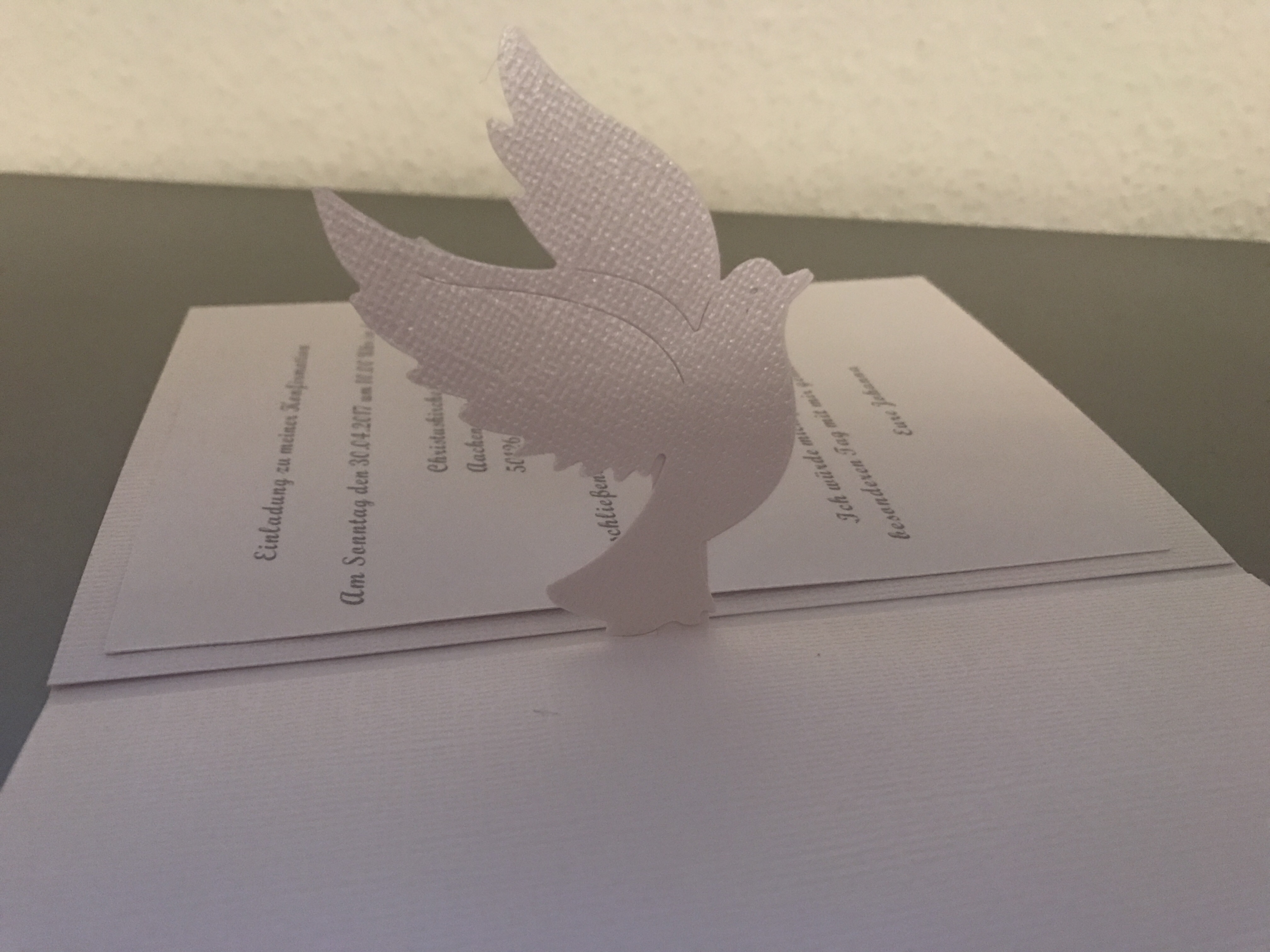 Schlichte, aber sehr elegante Einladung zur Kommunion mit Pop up Taube. 💝