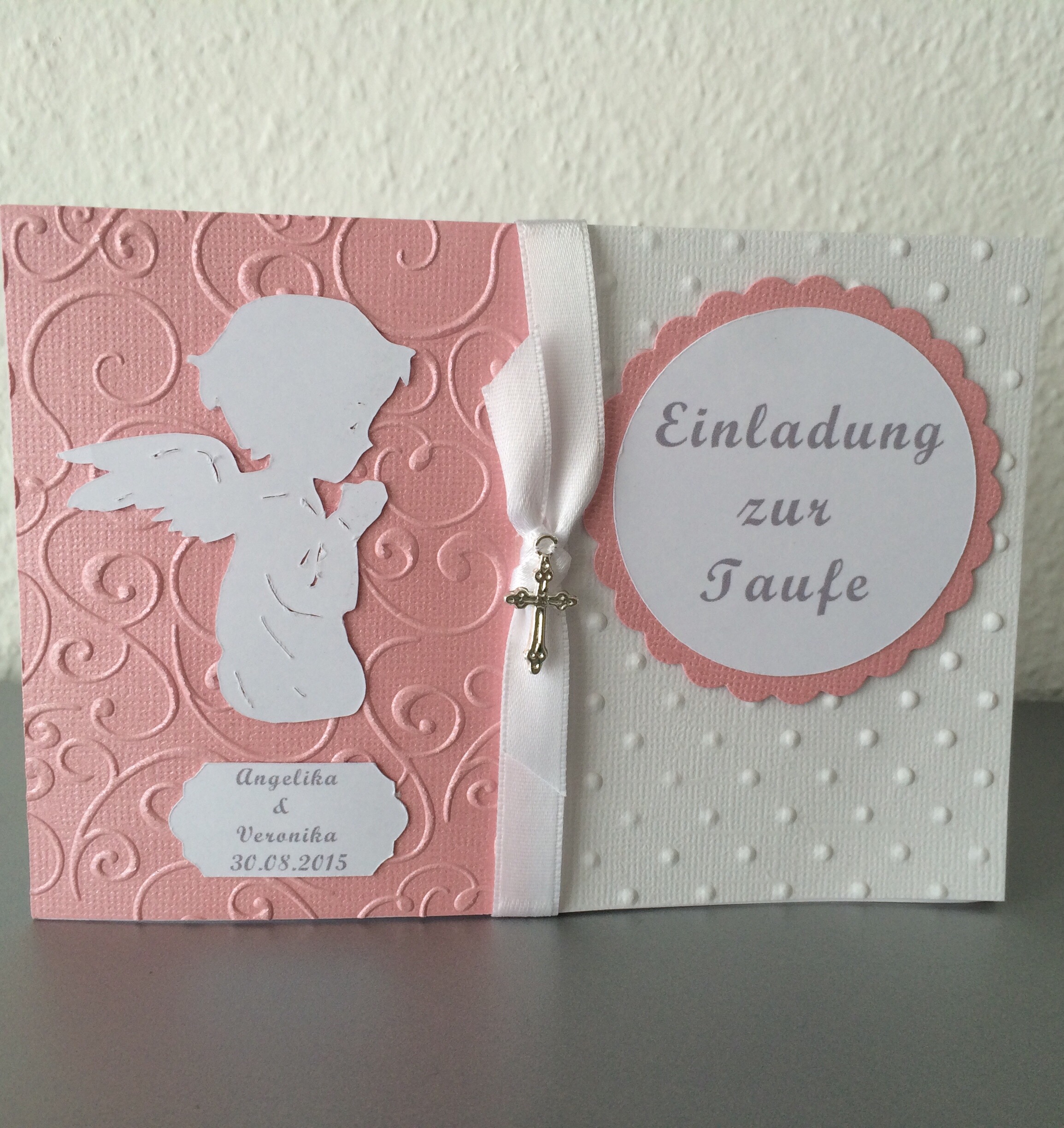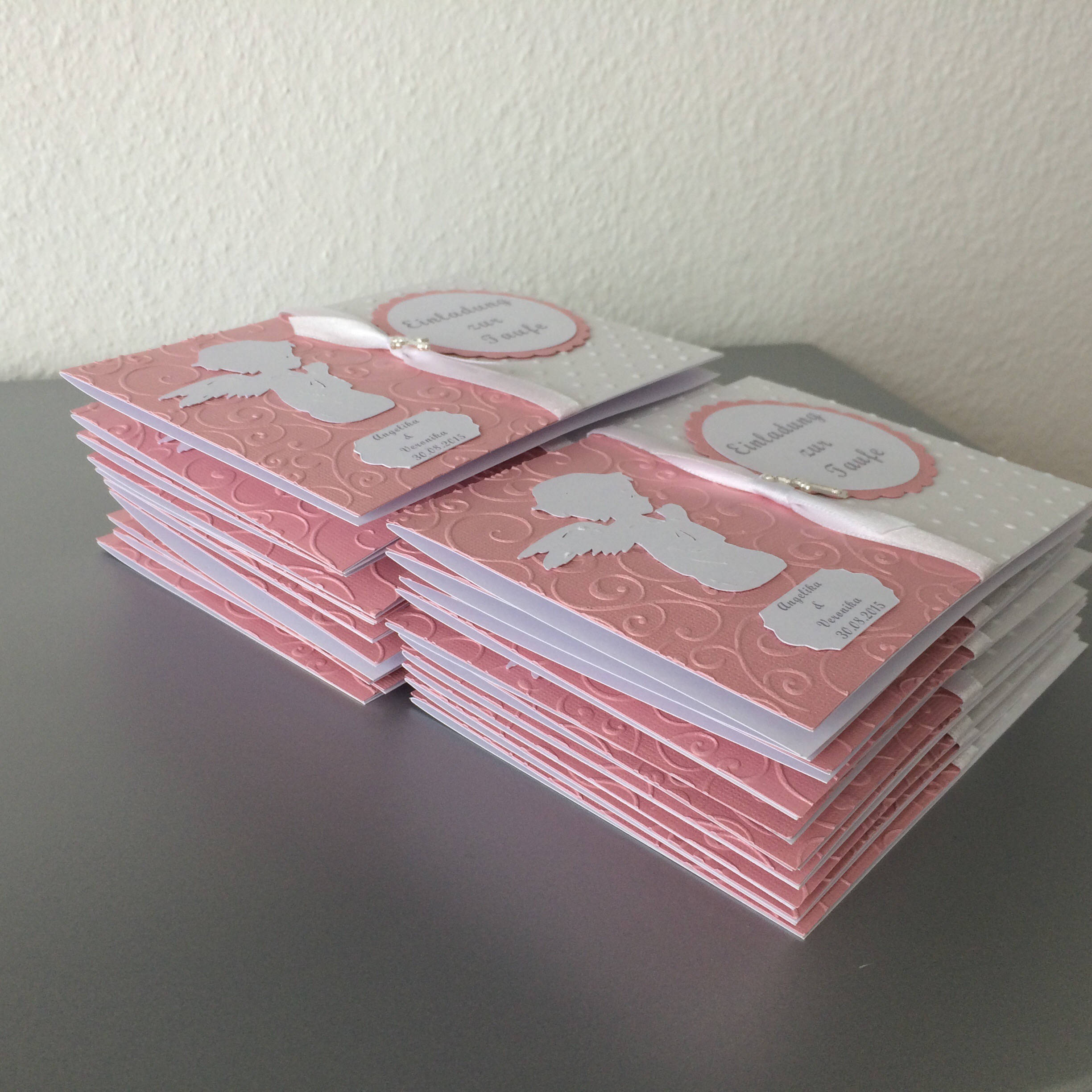 Wunderschöne elegante Einladung zur Taufe für Zwillings-Mädchen.