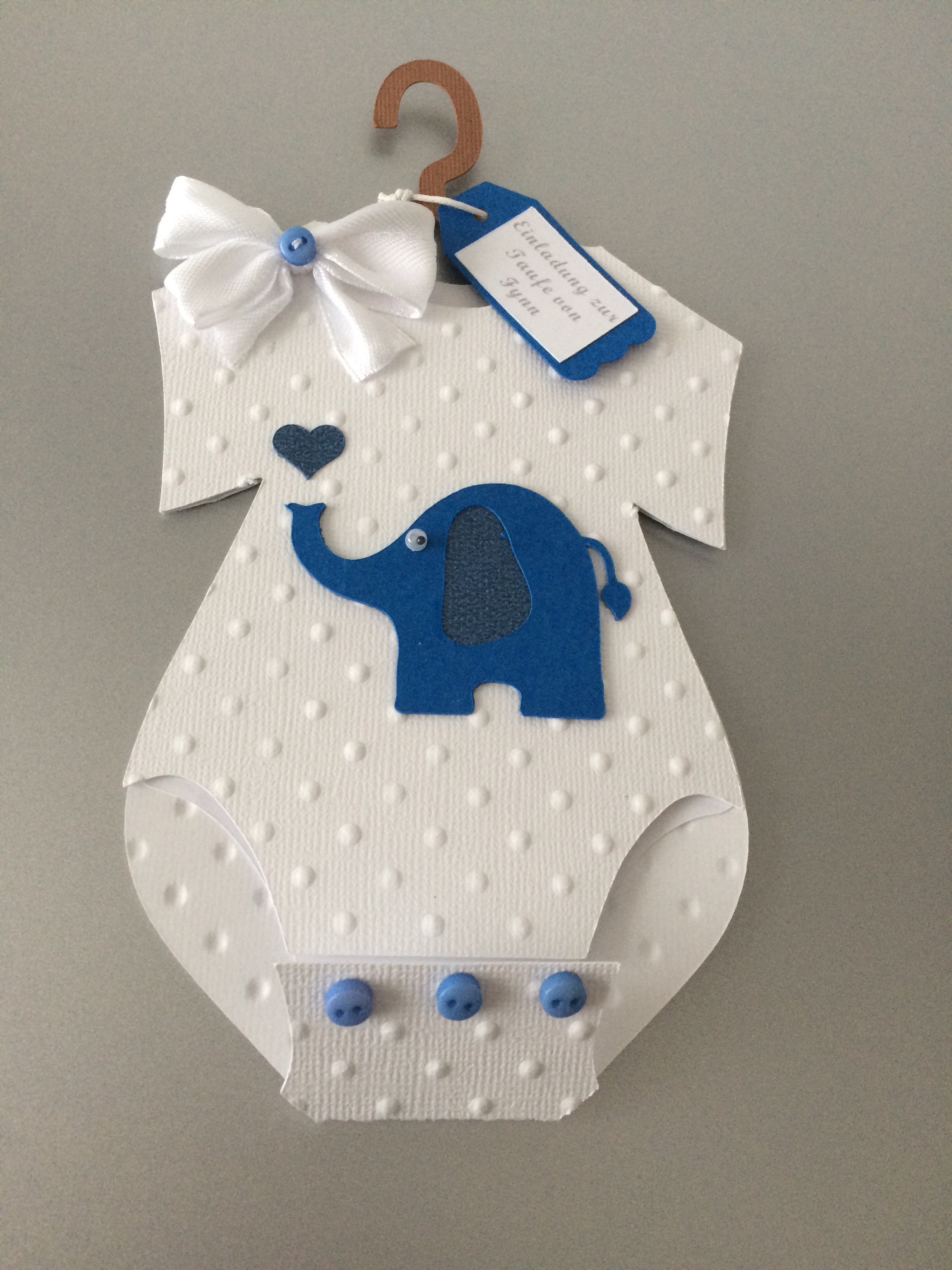 Einladung zur Taufe Babybody Elefant mit Luftballon *babyblau*