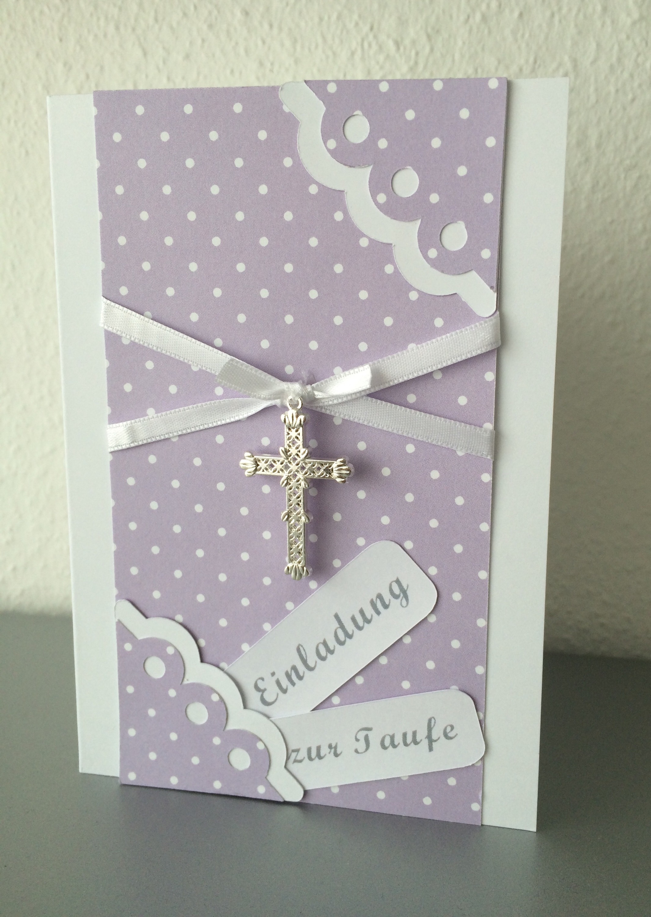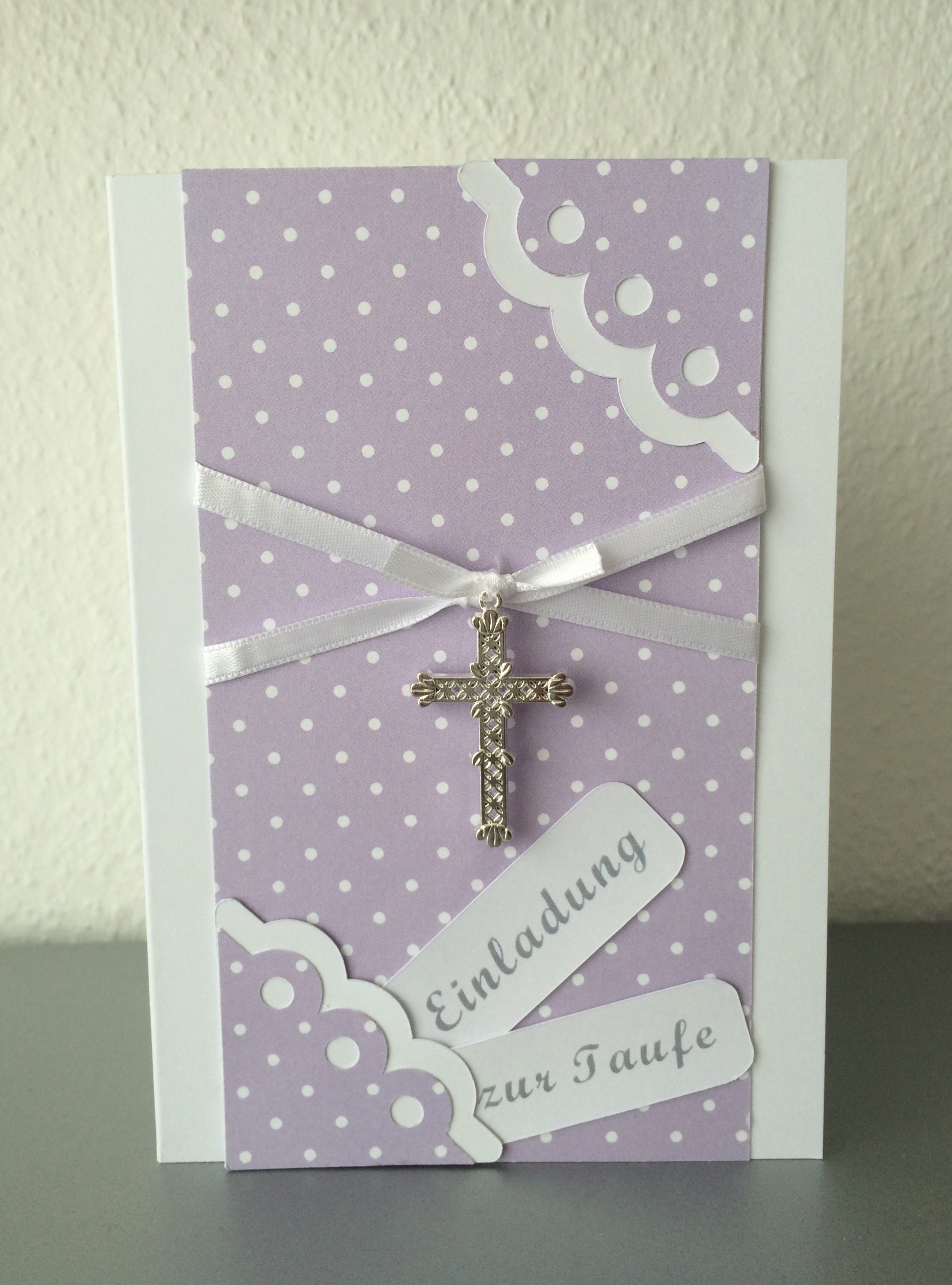 Hübsche und beliebte Einladung zur Taufe in Rosa mit Pünktchen. Gerne auch in vielen anderen Farben erhältlich und natürlich auch zu anderen Anlässen wie Kommunion oder Konfirnation.