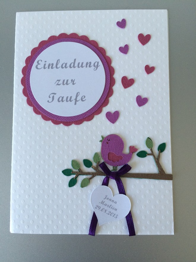 31. Juli 2015 von ButterflyCards Einladung Taufe Mädchen *Vögelchen* *lila* Süße Einladung zur Taufe für Mädchen in lila. Gerne auch in vielen anderen Farben möglich.